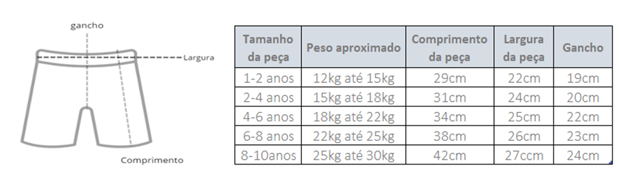Dúvidas nos tamanhos? - Utilize nossa tabela de medidas "As medidas podem sofrer pequenas variações nos tamanhos para mais ou para menos"