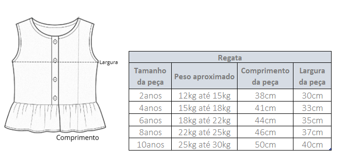 Dúvidas nos tamanhos? - Utilize nossa tabela de medidas "As medidas podem sofrer pequenas variações nos tamanhos para mais ou para menos"